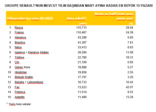 Avrupa pazarı %-26.2 küçülürken, Groupe Renault’nun satışları %36,0 düşüşle 321 bin 756 adet olarak gerçekleşti. Bu daralma özellikle ilk çeyreğin sonunda, grubun endüstriyel ve ticari faaliyetlerinin çoğunu durdurması nedeniyle, önemli ölçüde hız kazandı.
