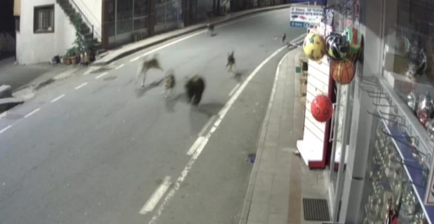 Olay, Rize’nin Çamlıhemşin ilçesinde gece saat 01.00 sularında gerçekleşti. Tepelerde yiyecek bir şey bulamayan yavru ayı ilçe merkezine indi. Burada sokak köpekleriyle dostluk kuran yavru ayı, ilçe merkezinde köpeklerle gezmedik yer bırakmadı. Dükkanların kapılarını yoklayan yavru ayı, istediğini bulamayınca tekrar geriye dönmek zorunda kaldı. Yavru ayının ve köpeklerin bir arada koşarak oluşturduğu görüntüler ise anbean işletmelerin güvenlik kameralarına yansıdı.